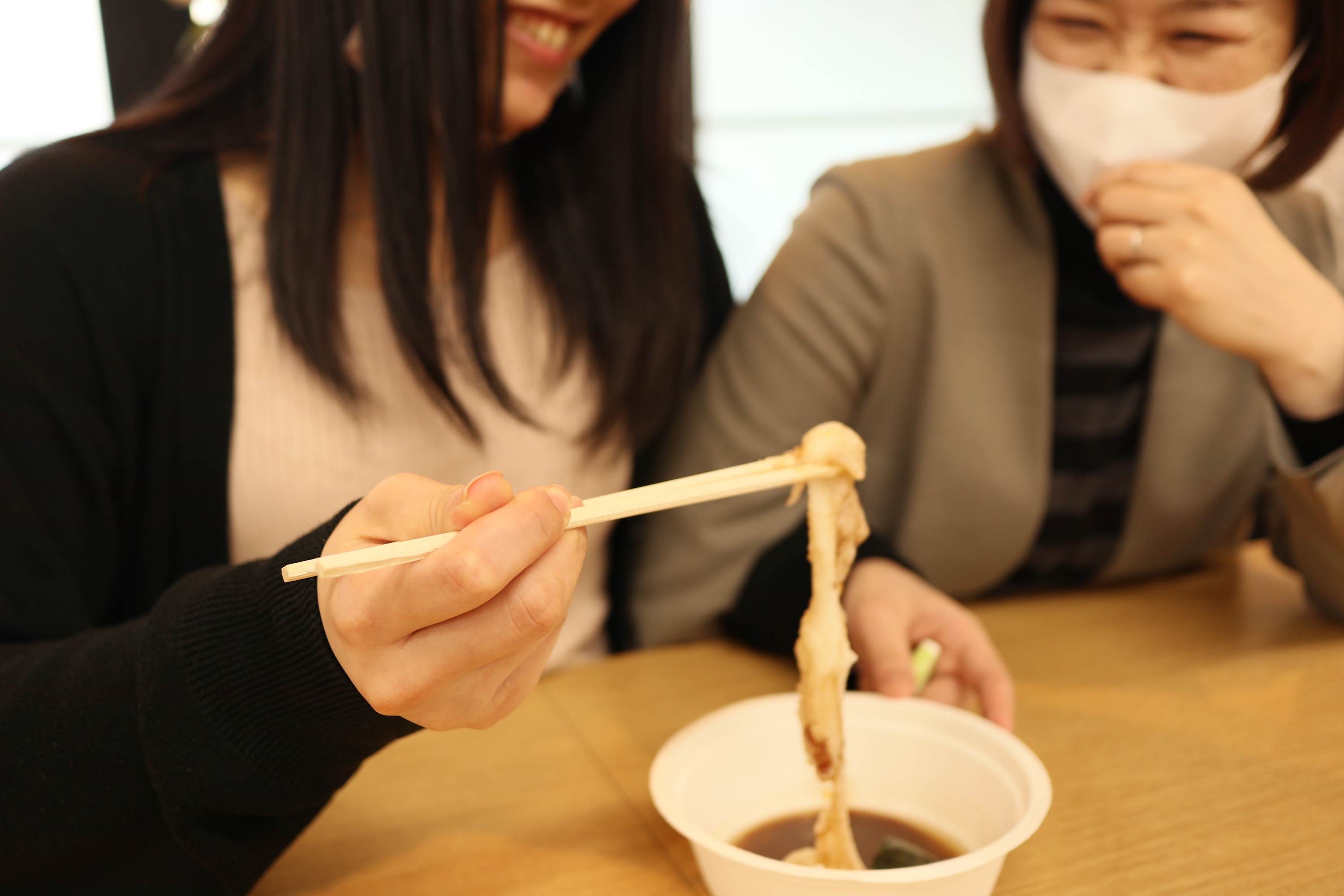 お汁粉の餅もよく伸びます。