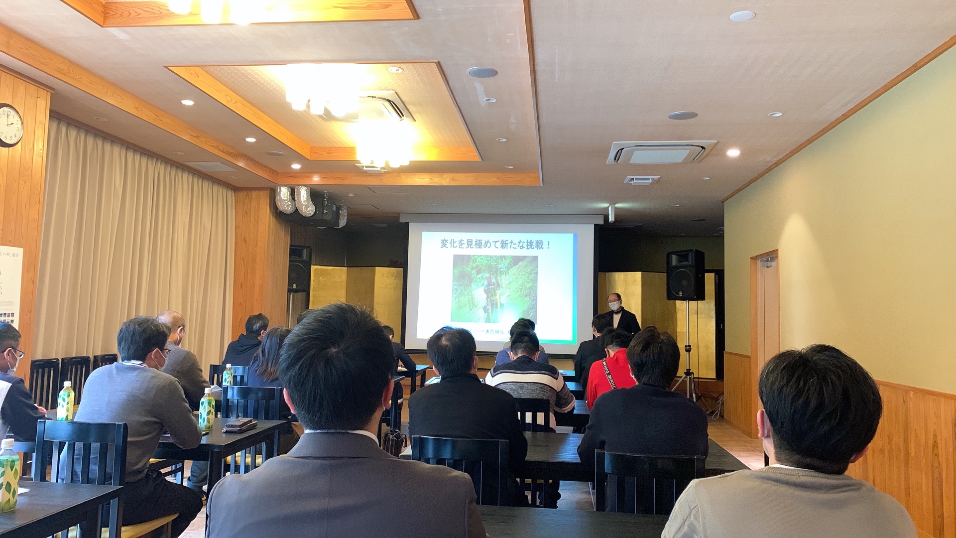 横石社長の講話。みな真剣に聞いてます。