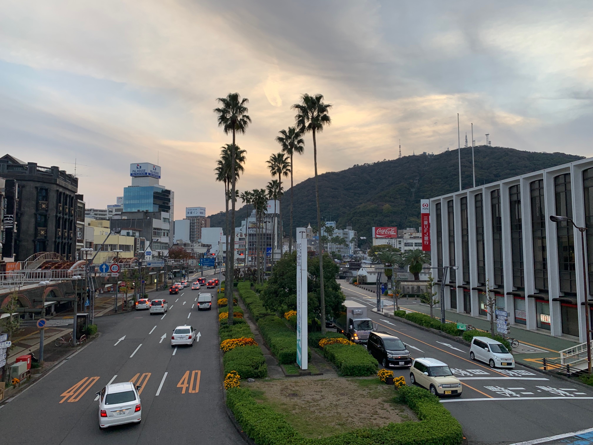 夕暮れに眉山と街並みがなんか映えます。